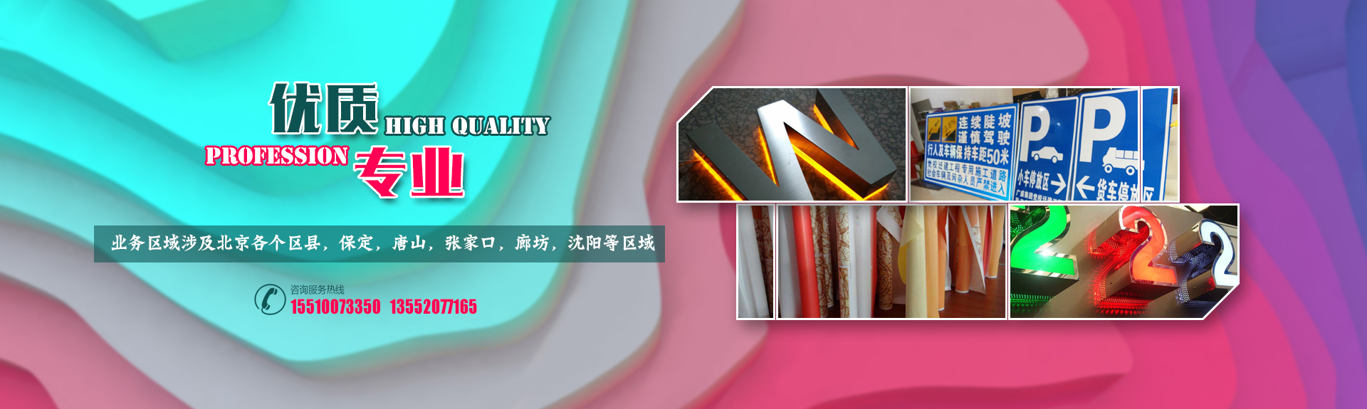 業(yè)務(wù)區(qū)域涉及北京各個(gè)區(qū)縣,保定,唐山,張家口,廊坊,沈陽(yáng)等區(qū)域。本公司以專(zhuān)業(yè)的服務(wù)為各行 各業(yè)制作了大量的廣告工程。